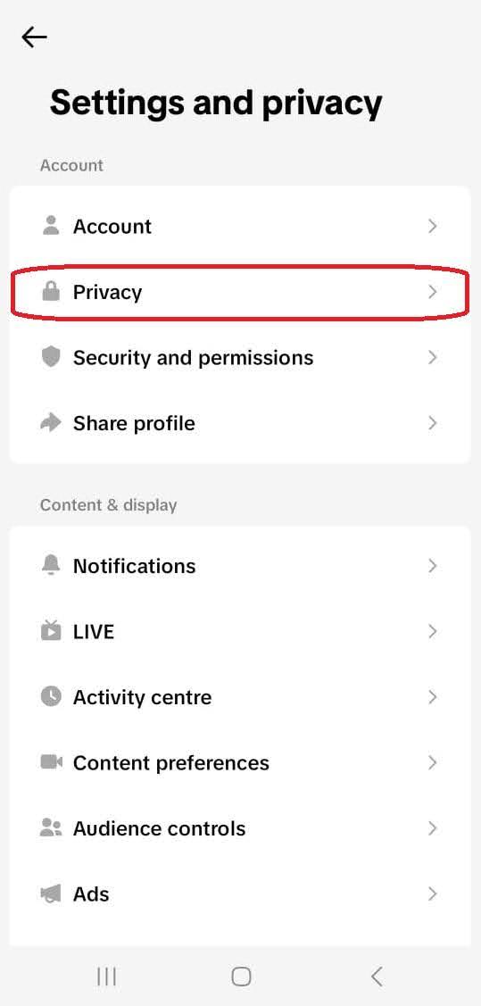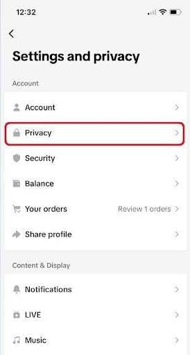 Hit the three parallel lines (the hamburger menu) in the upper-right corner and enter Settings and Privacy. Then, choose Privacy, as shown below.