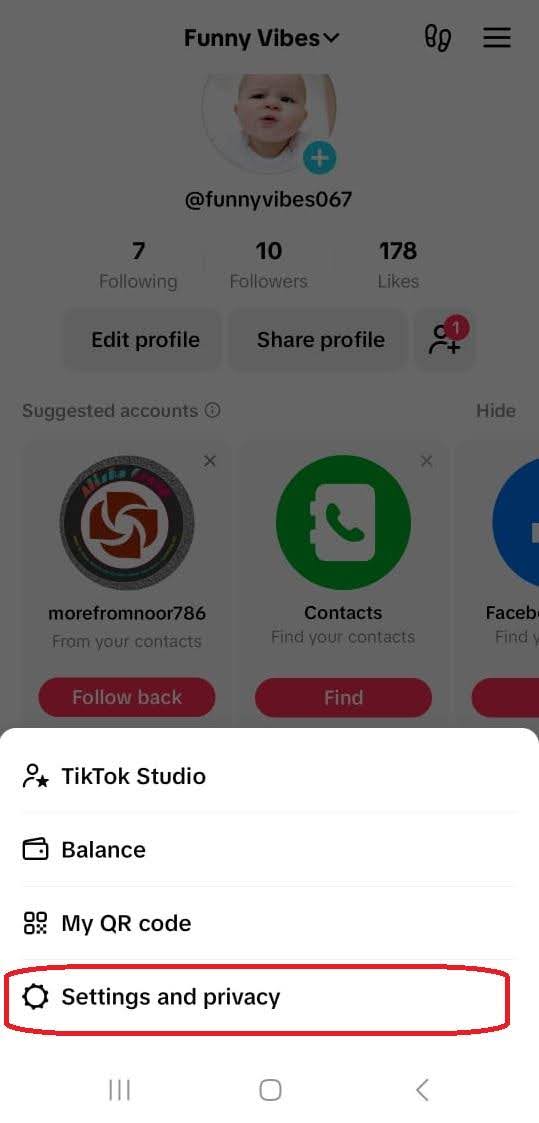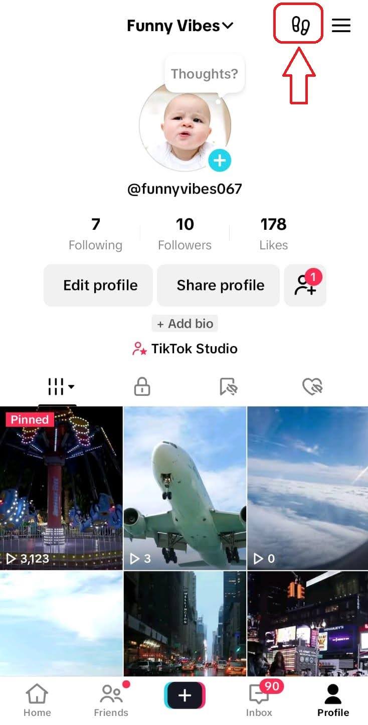 The notifications on your TikTok profile page also enable you to access profile view settings. The steps are as follows.