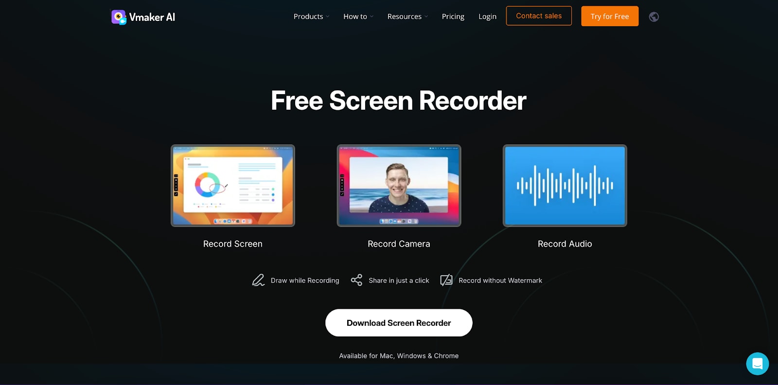 18. Vmaker – AI-Powered Screen and Webcam Recorder