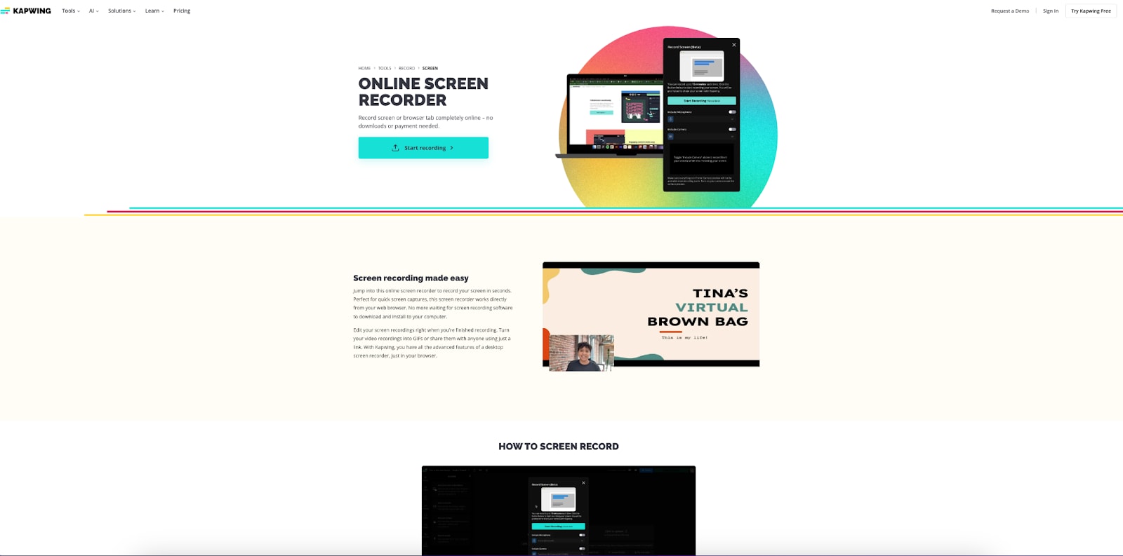 Kapwing is an online video editor with a built-in screen recorder, designed for users who want to edit and collaborate on projects in real-time. It offers text overlays, automatic subtitles, and cloud-based storage, making it easy to create and share content without software installation.